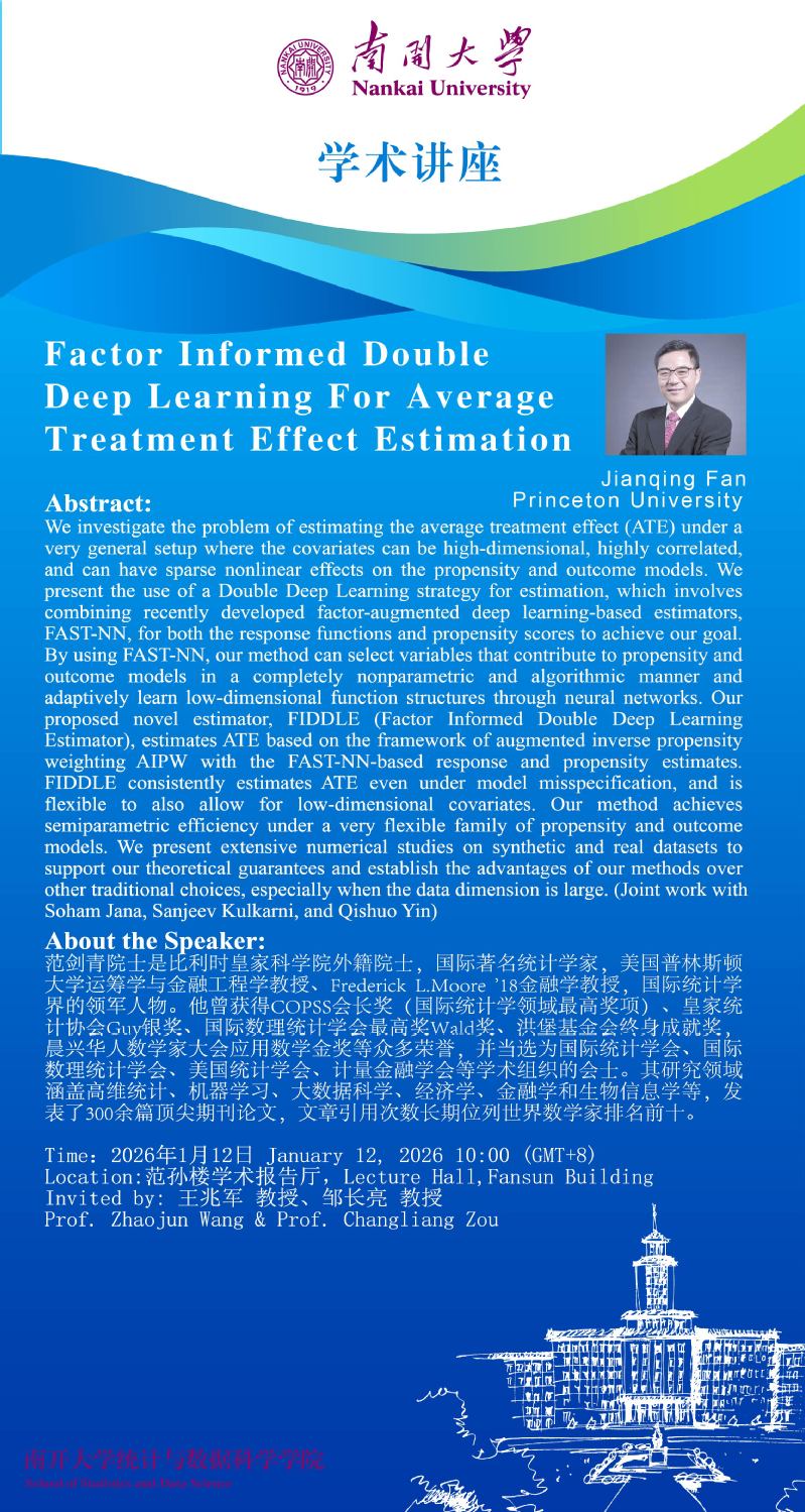 Factor Informed Double Deep Learning For Average Treatment Effect Estimation(范剑青)